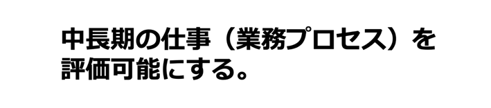 どうすれば良いのだろうか?ここでは、筆者が評価制度の見直しにおいて実施することを紹介しよう。中長期的な仕事を行うための処方箋だ。それは中長期的な仕事を分解して評価対象として認識可能にすることである。